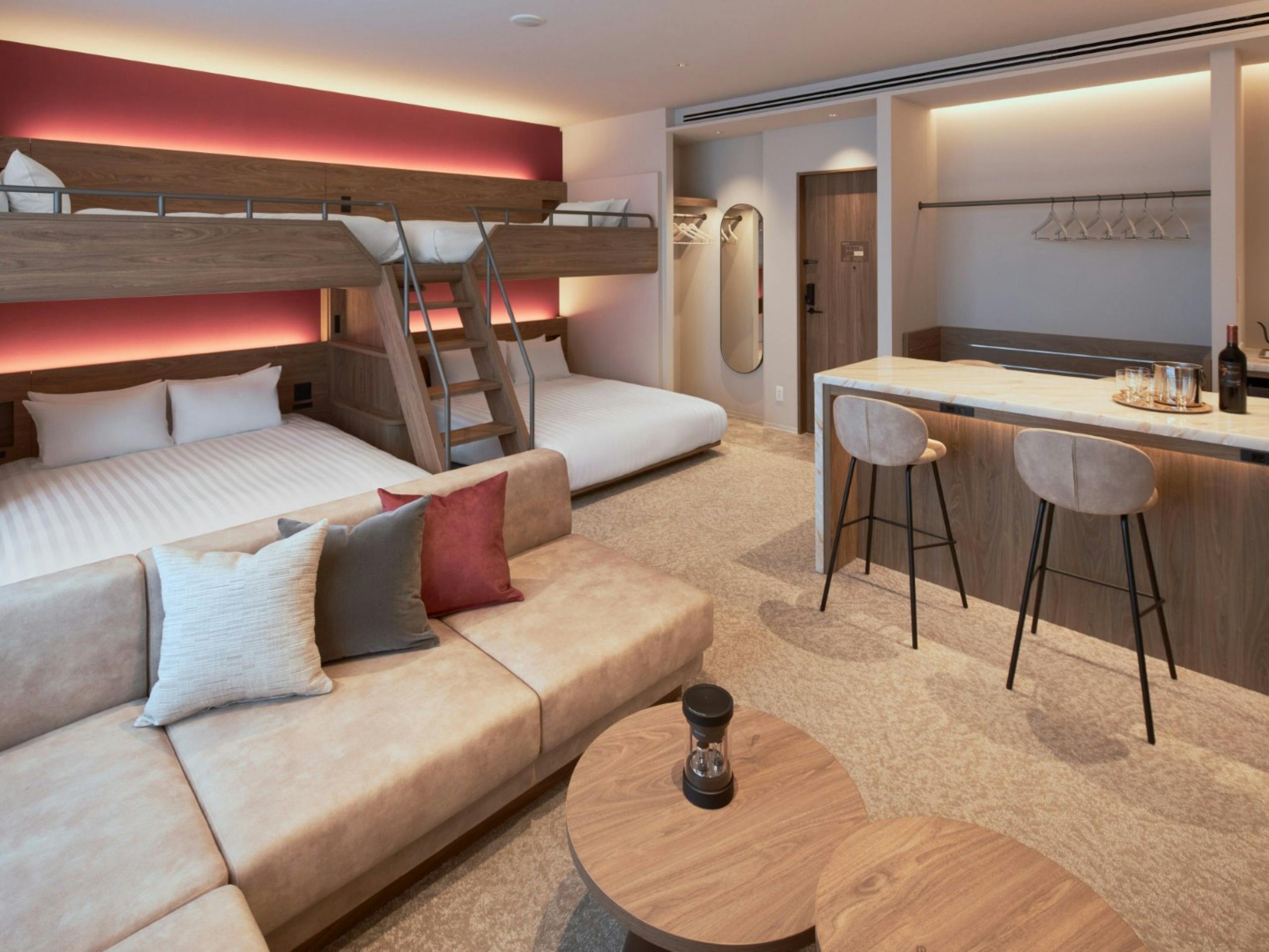 1955年のアメリカをイメージした新客室。通常ベッド2台に加えて、2段ベッドがあり、最大4名まで宿泊できるファミリーにおすすめの客室です。 [一休.com]