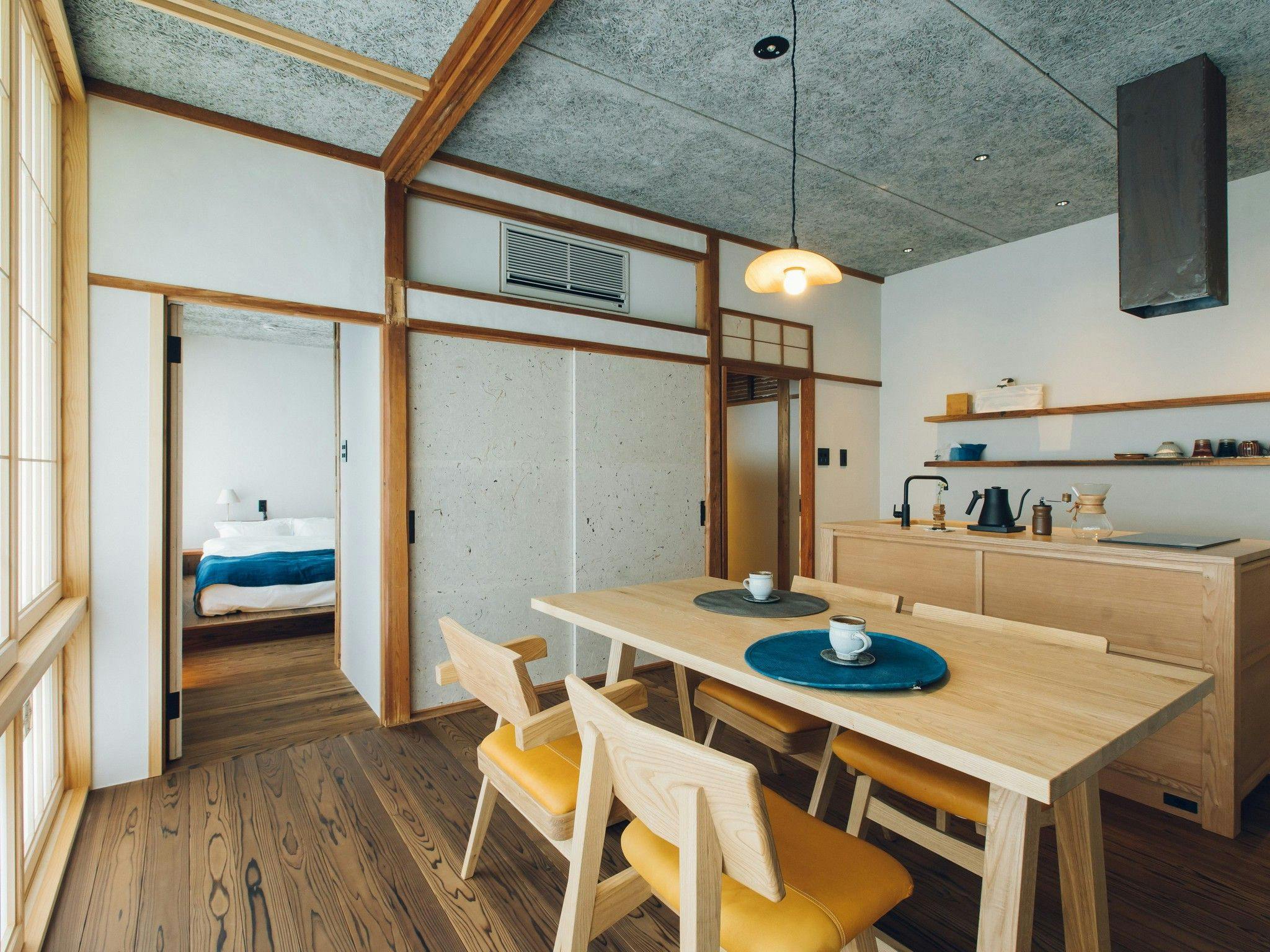 - 有福温泉。50年前に建てられた古い旅館をリノベーション。『てしごとの、そばで。』をコンセプトとする