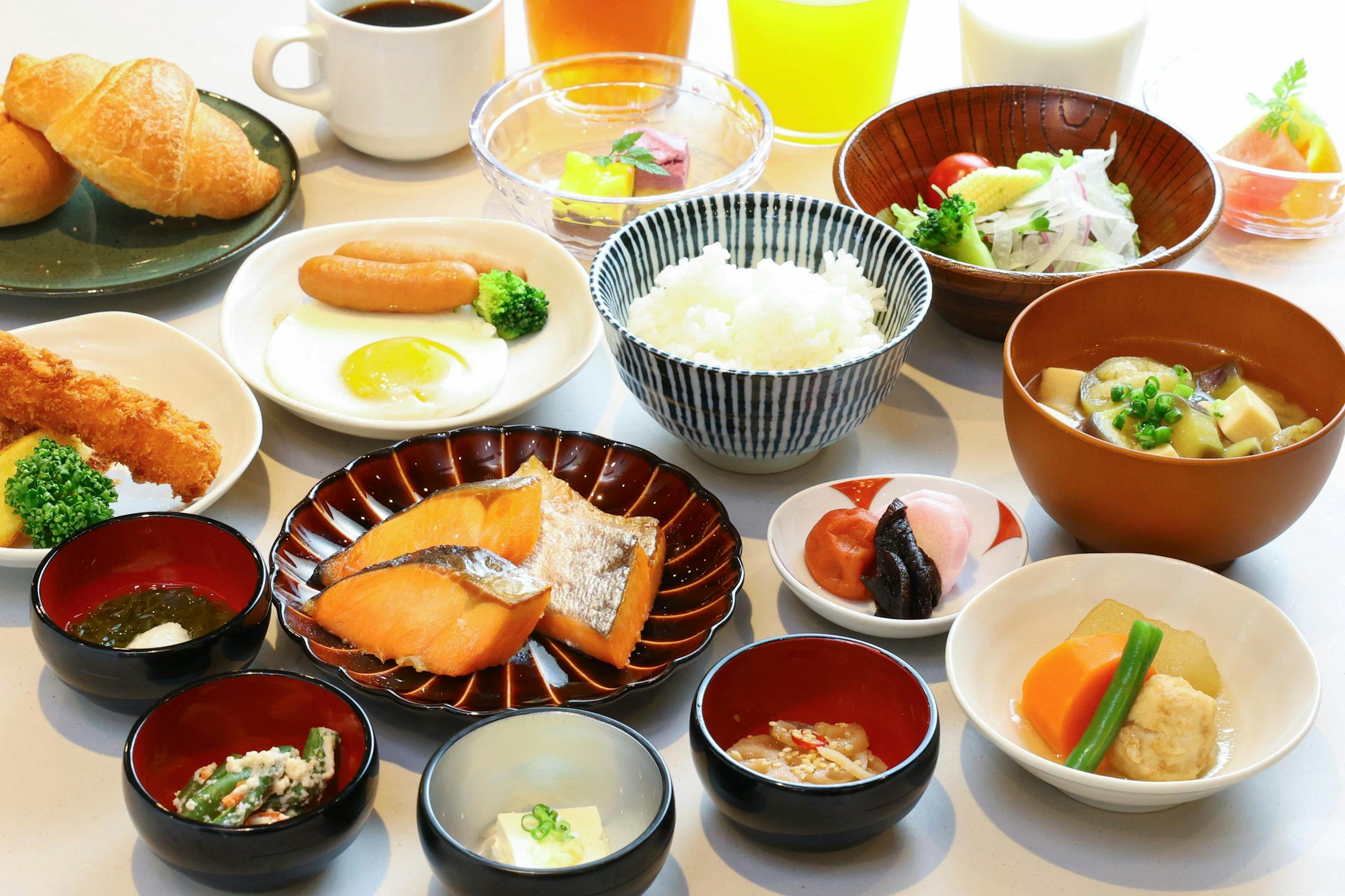 - 全国のドーミーインチェーン共通の和洋バイキング、の小鉢横丁と出来たての卵料理に加え、地域ごとの特色を出した「ご当地逸品料理」を提供